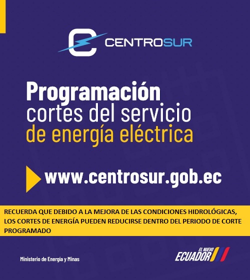Estimado usuario, Empresa Eléctrica Regional Centrosur C.A. le hace de su conocimiento que el presente sitio utiliza mecanismos de seguimiento de sitios web (denominados cookies) con el objetivo de funcionar de manera adecuada. Asimismo también se utiliza cookies por parte de terceros para mejorar permanentemente los servicios que le proporcionamos y también para mostrar anuncios de acuerdo con los intereses de nuestros usuarios.
