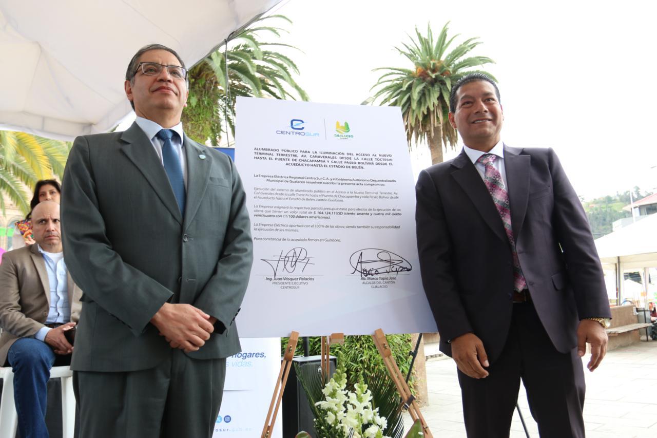 En el marco de las festividades de cantonización de Gualaceo, la Empresa Eléctrica Regional Centro Sur C. A. y el Gobierno Autónomo Descentralizado de este cantón, firmaron este martes, 25 de junio de 2024, un acta compromiso para la ejecución de obras de alumbrado público.