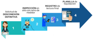 - Si por cualquier motivo no se retira el medidor, se cierra la orden de desconexión y se reactiva el servicio.