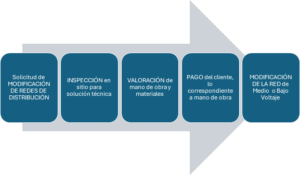 - Una vez que se haya realizado el pago por parte del cliente, se planifica la ejecución del trabajo de modificación de las redes de medio o bajo voltaje